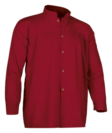 Bluză overshirt de mânecă lungă, cu platcă. Confecționată din țesătură de poplin din amestec de bumbac/poliester, rezistentă și durabilă. Gât rotund înalt și închidere cu nasturi în față, partea de jos amplă, pentru închiderea opțională cu nod. Platcă ușor încrețită în partea de sus pentru mai multă lejeritate și confort. Mâneci lungi cu manșete cu nasturi pentru o mai bună potrivire. Metode de personalizare adecvate: broderie, serigrafie, vinil, transfer. Ideală pentru petreceri populare, grupuri sau uz ocazional.