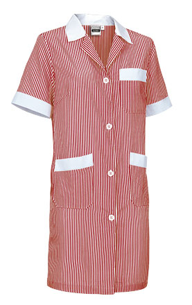Halat de lucru pentru femei, mânecă scurtă și croială cambrată. Confecționat din țesătură ușoară cu fir vopsit și design cu dungi verticale, rezistent și durabil. Guler adânc tip cămașă, cu anchior în V, confortabil și răcoritor. Închidere centrală cu nasturi de la dreapta la stânga și la talie o bandă cusută la spate pentru un plus de confort. Două buzunare frontale și un buzunar în stânga pieptului, toate aplicate, pentru a păstra totul accesibil. Metode de personalizare adecvate: serigrafie, broderie, transfer, vinil. Ideal ca haine de lucru și uniforme personal curățenie.