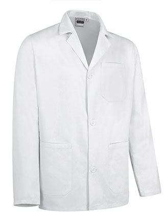 Halat de lucru scurtă, de mânecă lungă și manșete drepte. Confecționat din țesătură din amestec de bumbac twill cu poliester pentru durabilitate și rezistență. Guler adânc tip cămașă, cu anchior în V, confortabil și răcoritor. Închidere centrală cu nasturi și la talie o bandă cusută la spate pentru un plus de confort. Două buzunare frontale și un buzunar în stânga pieptului, toate aplicate, pentru a păstra totul accesibil. Metode de personalizare adecvate: serigrafie, broderie, transfer, vinil. Ideal ca haine de lucru și uniforme.