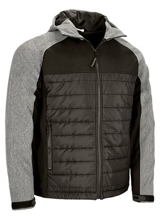 Jachetă bicolor cu glugă. Confecționată din țesătură matlasată în trei straturi și din țesătură softshell în partea de sus, mâneci, glugă și laterale. Guler înalt, cu glugă din două straturi și fermoar central pentru un plus de căldură și confort. Manșete reglabile cu închidere din cauciuc cu funcție de cârlig (sistem ciupercă) și talie dreaptă cu cordon elastic ajustabil la bată pentru o mai bună potrivire. Două buzunare verticale în talie, cu închidere cu fermoar și un buzunar interior cu închidere cu scai pentru a păstra totul accesibil. Include fermoar interior jos, în spate, pentru a facilita diferite metode de personalizare: serigrafie, broderie, transfer, patch-uri, vinil. Ideal ca haine de lucru, haine sport și textile promoționale.