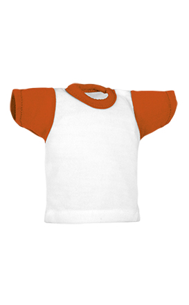 Tricou mini pentru promoții. Confecționat din material neted de 100% poliester. Design bicolor pe guler și mâneci, dar disponibil și în alb simplu. Metode de personalizare adecvate: sublimare pe alb, serigrafie, transfer, vinil. Ideal pentru a fi agățat pe umerașul MINIPERCHA cu ventuză și pus pe supafețe lucioase, de exemplu geamuri, parbriz mașină, gresie, etc.