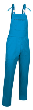 Pantaloni tip salopetă, cu platcă și bretele. Confecționați din țesătură de amestec de bumbac twill cu poliester rezistent și durabil. Platcă frontală cu bretele reglabile pentru o mai bună potrivire. Închidere cu fermoar ascuns sub clapetă, cu nasturi pe partea stângă și talie elastică la spate, pentru o îmbrăcare ușoară și o potrivire mai bună. Două buzunare frontale mari la șolduri, un buzunar drept la spate și un buzunar central mare cu fermoar în partea de sus, pentru a păstra totul accesibil și a evidenția personalizarea. Metode de personalizare adecvate: broderie, serigrafie, vinil, transfer. Ideal pentru petreceri populare pentru grupuri și ca haine de lucru.