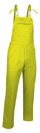 Pantaloni tip salopetă, cu platcă și bretele. Confecționați din țesătură de amestec de bumbac twill cu poliester rezistent și durabil. Platcă frontală cu bretele reglabile pentru o mai bună potrivire. Închidere cu fermoar ascuns sub clapetă, cu nasturi pe partea stângă și talie elastică la spate, pentru o îmbrăcare ușoară și o potrivire mai bună. Două buzunare frontale mari la șolduri, un buzunar drept la spate și un buzunar central mare cu fermoar în partea de sus, pentru a păstra totul accesibil și a evidenția personalizarea. Metode de personalizare adecvate: broderie, serigrafie, vinil, transfer. Ideal pentru petreceri populare pentru grupuri și ca haine de lucru.